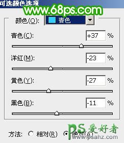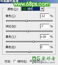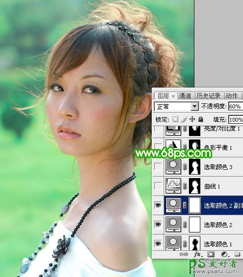 2、创建可选颜色调整图层,对绿色及青色调整,参数设置如图4,5,确定后把当前图层复制一层,图层不透明度改为:60%,效果如图6。