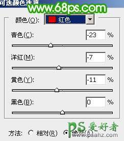 4、调出当前图层蒙版选区,创建可选颜色调整图层,对红,黄,白进行调整,参数设置如图12 - 14,效果如图15。