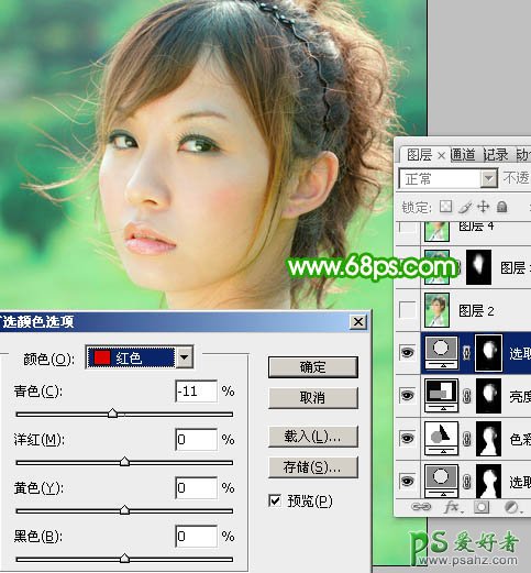6、调出当前图层蒙版选区,创建可选颜色调整图层,对红色调整,参数及效果如下图。