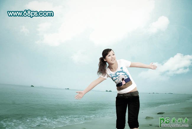今天我们来学习一篇PS美女照片调色实例教程,PS给海景MM少女艺术照调出淡青的中性色,本教程介绍简单的中性色的调色方法。在调色之前,需要简单加强一些图片的层次感,可以适当把背景加上云彩。然后慢慢把照片的主色调成青色调。人物部分也需要简单的调