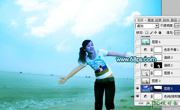 PS给海景MM少女艺术照调出淡青的中性色