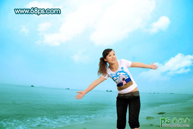 PS给海景MM少女艺术照调出淡青的中性色