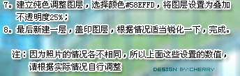7、创建纯色调整图层,颜色设置为:#58effd,图层混合模式改为“叠加”,图层不透明度改为:25%。 8、最后新建一个图层,盖印图层。适当把图层锐化一下,完成最终效果。