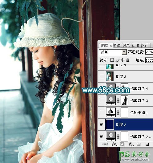 4、新建一个图层,填充颜色:#020B4D,图层混合模式改为“滤色”,图层不透明度改为:20%,如下图。