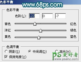 5、创建色彩平衡调整图层,参数设置如图10,效果如图11。