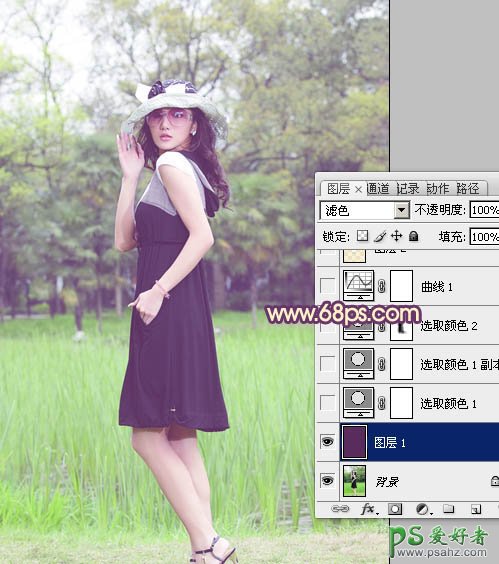 1、打开原图素材,新建一个图层填充颜色:#592C5B,图层混合模式改为“滤色”,效果如下图。