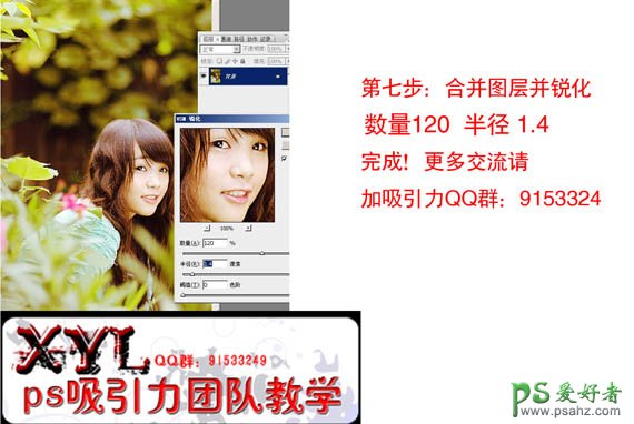 > 锐化 > USM锐化,数值为:120,半径为:1.4,确定后完成最终效果。
