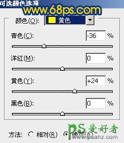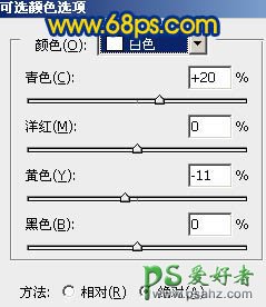 3、创建可选颜色调整图层,参数设置如图8,效果如图9。