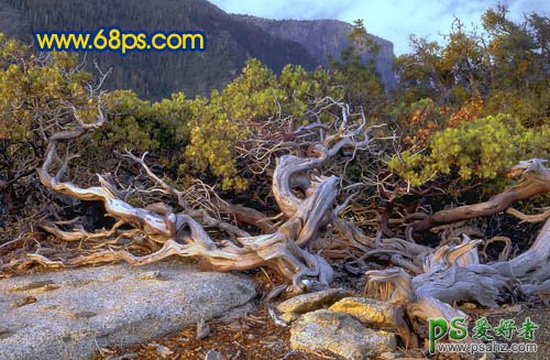 PS风景艺术照调色教程,PS调色教程:打造清新色彩风景艺术照特效,本教程的色调有点类似黄昏后的效果。调色的过程也比较简单。开始的时候我们需要把素材图的整体色调压暗,然后开始换色,把黄绿色调成鲜艳的橙黄色,白色部分调成蓝色,再协调好整体颜色皆