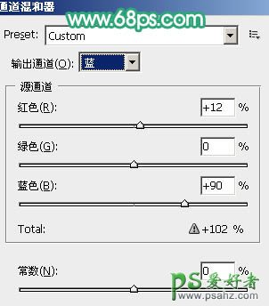 混合器调整图层,对蓝色进行调整,参数设置如图16,效果如图17。