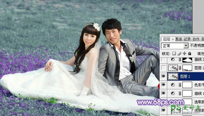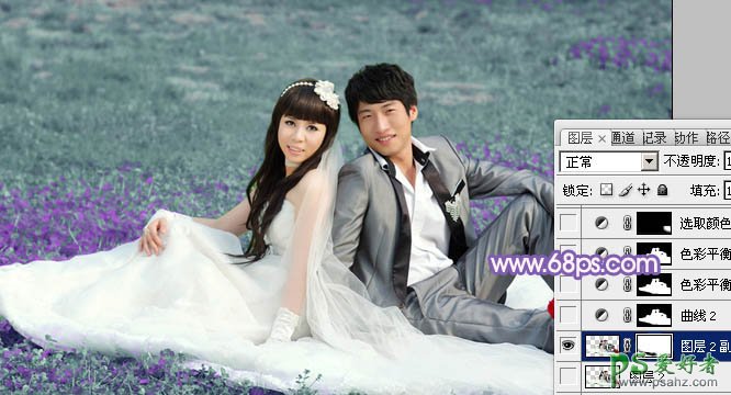 7、把背景图层复制一层,按Ctrl + Shift + ] 置顶。用钢笔把人物部分抠出来,复制到新的图层。把背景副本图层隐藏,如图20。给人物图层加上图层蒙版,用黑色画笔把人物裙子部分的小草部分擦掉,如图21。