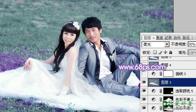11、新建一个图层,按Ctrl + Alt + Shift + E 盖印图层。执行:滤镜 > 模糊 > 高斯模糊数值为5,确定后把图层混合模式改为“柔光”,图层不透明度改为:30%,效果如下图。