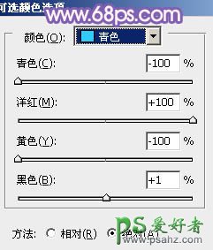 2、创建可选颜色调整图层,对青色进行调整,把青色部分调成较为突出的紫色调,加强图片层次感。