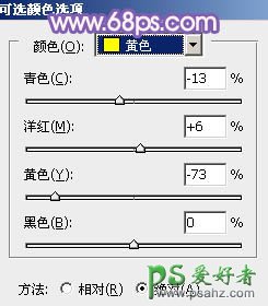 3、创建可选颜色调整图层,对黄,绿,蓝进行调整,参数设置如图7 - 9,效果如图10。
