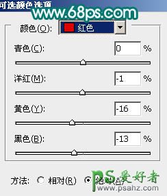 6、调出抠出的人物肤色部分选区,创建可选颜色调整图层,参数设置如图14,15。确定后再调出人物肤色部分选区,创建亮度/对比度调整图层,参数设置如图16,效果如图17。