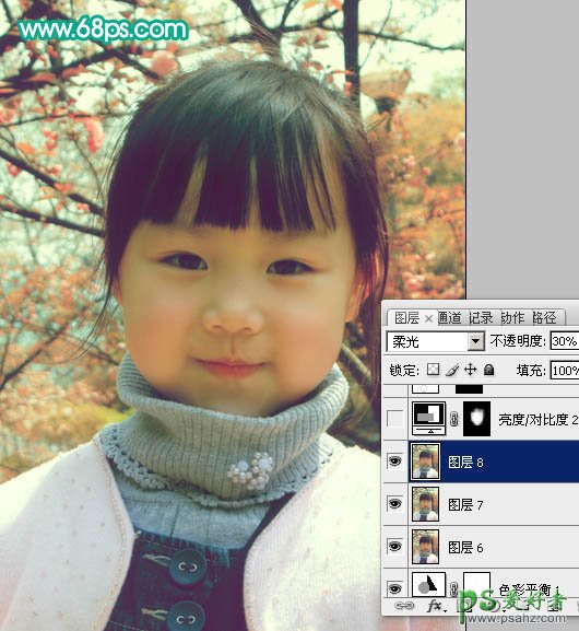 12、新建一个图层,盖印图层。执行:滤镜 > 模糊 > 高斯模糊,数值为5,确定后把图层混合模式改为“柔光”,图层不透明度改为:30%,效果如下图。