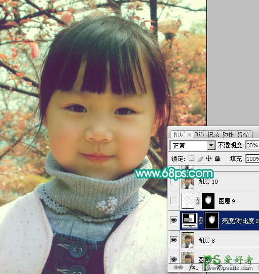 13、用套索把人物脸部选取出来,羽化8个像素后创建亮度/对比度调整图层,参数设置如图22,效果如图23。