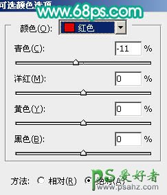 16、创建可选颜色调整图层,对红色进行调整,参数设置如图27,效果如图28。