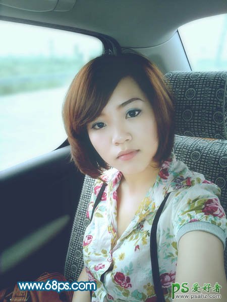 PS调色教程:给车内性感美女照调出柔美中性青色调