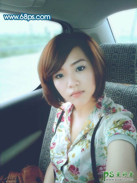 PS调色教程:给车内性感美女照调出柔美中性青色调