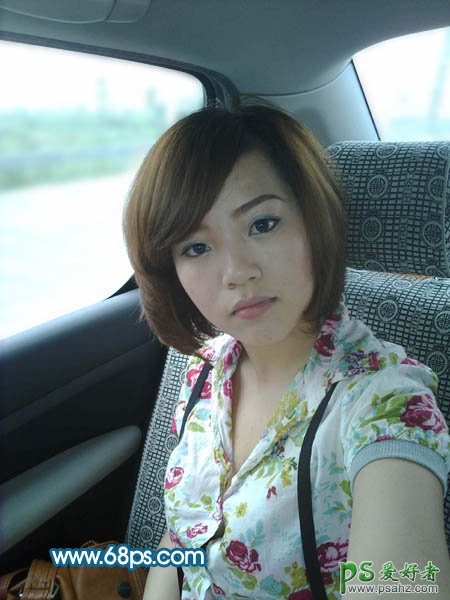 PS调色教程:给车内性感美女照调出柔美中性青色调