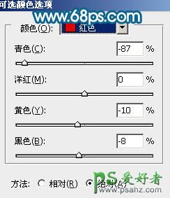 9、创建可选颜色调整图层,参数设置如图16 - 19,确定后吧图层不透明度改为:50%,效果如图20。
