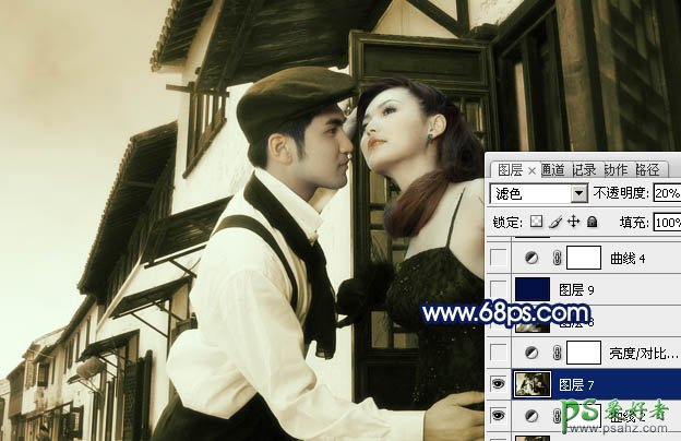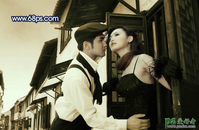 PS调色教程:给一对情侣照片调出怀旧古黄色彩