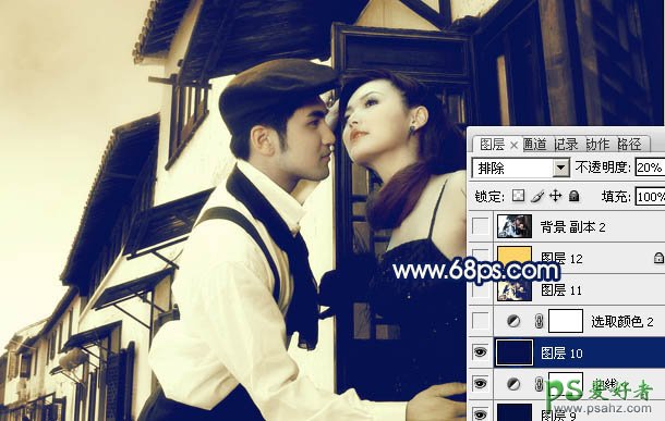PS调色教程:给一对情侣照片调出怀旧古黄色彩