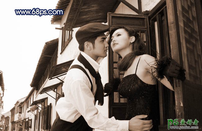 PS调色教程:给一对情侣照片调出怀旧古黄色彩