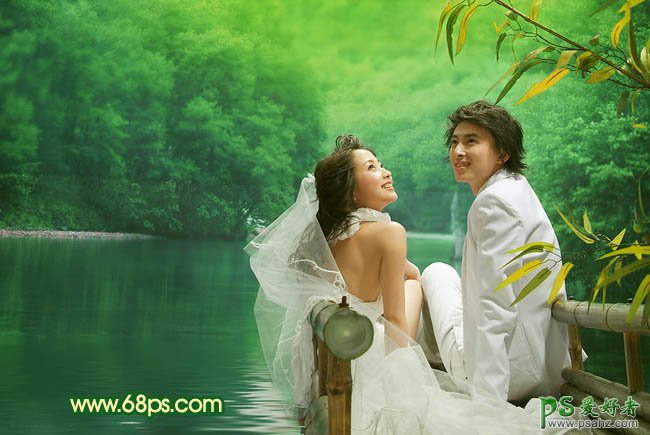 今天我们来学习一篇PS婚片后期调色教程,PS调色教程:调出清新绿色水景婚纱照,本教程介绍黄绿色婚片的调色方法。在调色的时候为了统一色调,我们需要把画面中一些绿植的色调进行特殊处理,形成视觉重心。同时把人物的色调也调成类似的,这样画面的层次就