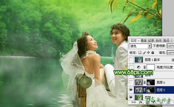 10、新建一个图层,按字母“D”,把前景背景颜色恢复到默认的黑白。执行:滤镜 > 渲染 > 云彩,效果如图25,确定后把图层混合模式改为“滤色”,按住Alt键添加图层蒙版,用白色画笔把水面部分的云彩擦出来,效果如图26。