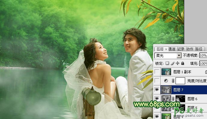 12、新建一个图层,按Ctrl + Alt + Shift + E 盖印图层,按Ctrl + Shift + U 去色,图层混合模式改为“柔光”,图层不透明度改为:10%,如下图。