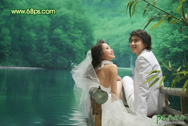 今天我们来学习一篇PS婚片后期调色教程,PS调色教程:调出清新绿色水景婚纱照,本教程介绍黄绿色婚片的调色方法。在调色的时候为了统一色调,我们需要把画面中一些绿植的色调进行特殊处理,形成视觉重心。同时把人物的色调也调成类似的,这样画面的层次就