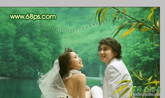 6、感觉画面还是有点平淡,需要再增加一些高光。新建一个图层用套索勾出图14所示的选区,按Ctrl + Alt + D 羽化60个像素后填充颜色:#F9E614,如图15。然后把图层混合模式改为“叠加”,图层不透明度改为:50%,如图16。