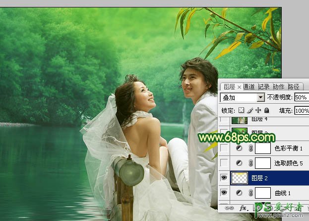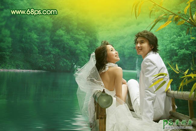 今天我们来学习一篇PS婚片后期调色教程,PS调色教程:调出清新绿色水景婚纱照,本教程介绍黄绿色婚片的调色方法。在调色的时候为了统一色调,我们需要把画面中一些绿植的色调进行特殊处理,形成视觉重心。同时把人物的色调也调成类似的,这样画面的层次就