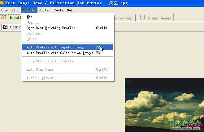9、拼合“天空”、“天空01”、“天空02”图层,文件-另存为,导出图片为“天空.jpg”。我想要画面更平滑一些,用Neat image2滤镜适当降噪处理,参数设置如下图,没有这款滤镜的可以去网上下载。