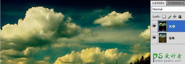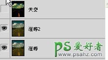 12、复制“道路”图层,重命名为“道路2”,同时隐藏“天空”图层。
