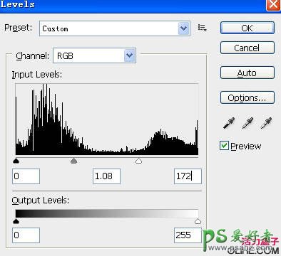 16、“道路3”图层,图像-调整-色阶,参数设置为0,1.08,172。
