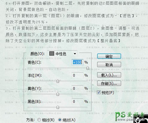 1、打开原图素材,双击背景图层解锁,复制两层,先把复制的这两层的眼睛关闭隐藏图层。回到背景图层执行:图像 > 调整 > 色及,选择自动色阶。 2、打开复制的第一层(图层1)的眼睛,把图层混合模式改为“滤色”,图层不透明度改为:25%。 3、打开复制的第二个图层前的眼睛,执行:图像 > 调整 > 可选颜色,对中性色进行调整,参数设置如下图。这一步主要为了压深天空的云彩,甜菜碱图层蒙版,把除了天空云彩的其他部分擦掉。图层混合模式改为“”正片叠底。