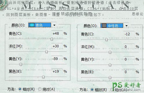 4、合并可见图层,进入通道面板,把绿色通道复制到蓝色通道(点绿色通道按Ctrl + A 全选,按Ctrl + C 复制,点蓝色通道,按Ctrl + V 粘贴),点击RGB层回到图层面板。执行:图像 > 调整 > 可选颜色,参数及效果如下图。