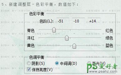 5、创建色彩平衡调整图层,参数设置如下图。