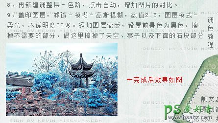 8、创建色阶调整图层,点自动,增加图片对比。 9、新建一个图层盖印图层。执行:滤镜 > 模糊 > 高斯模糊,数值为2.8,确定后把图层混合模式改为“柔光”,不透明度改为:32%。添加图层蒙版,设置前景色味黑色,擦掉不需要的部分,如天空以及石块部分。