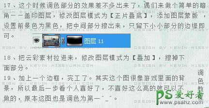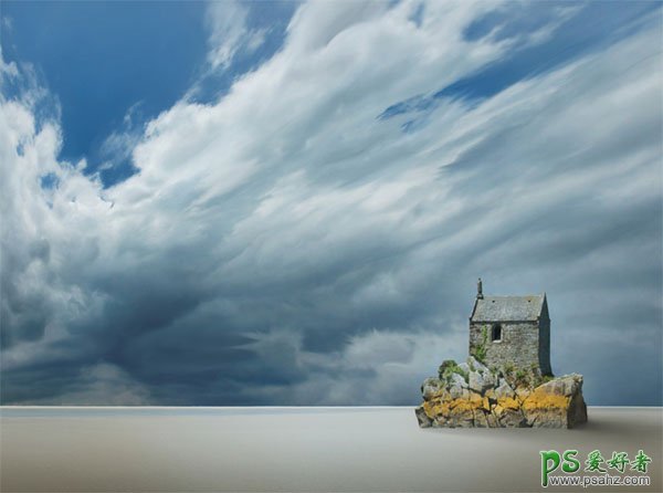17、这个时候调色部分的效果差不多了,我们做个简单的暗角。新建一个图层盖印图层,图层混合模式改为“正片叠底”,添加图层蒙版,设置前景色味黑色,把中间部分擦出来,只留下小小部分的边缘即可。 18、把云彩素材拖进来,图层混合模式改为“叠加”,加上图层蒙版用黑色画笔擦掉下面部分。 19、最后加上边框和前面文字,完成最终效果。