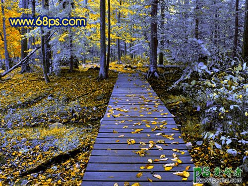 photoshop给秋季风景图片调出诡异的蓝光效果