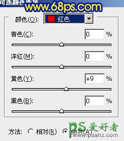 7、创建可选颜色调整图层,对红,黄,青,蓝进行调整,参数设置如图23 - 26,效果如图27。