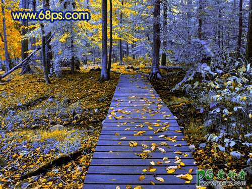 photoshop给秋季风景图片调出诡异的蓝光效果