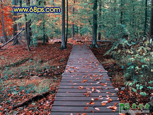 photoshop给秋季风景图片调出诡异的蓝光效果