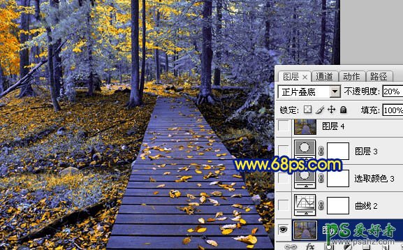 5、新建一个图层,按Ctrl + Alt + Shift + E 盖印图层。图层混合模式改为“正片叠底”,图层不透明度改为:20%,稍微把整体颜色调暗一点。