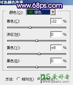 6、创建可选颜色调整图层,对绿色及青色调整,参数设置如图16,17,效果如图18。