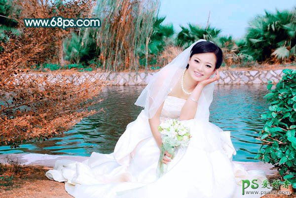 PS婚片调色教程:打造柔情似水的漂亮美女水景婚纱照